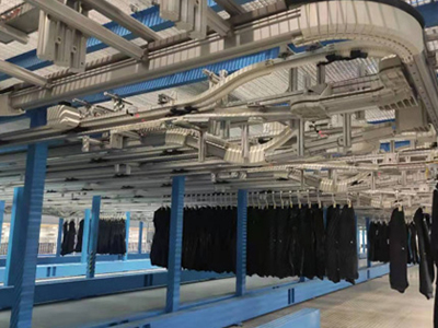 吊掛懸鏈的智能化大幅度的提高工廠生產效率,本系統吊掛式智能運輸生產,將場內的各個生產工序智能的連接一起,提高了企業的自動化生產形象,減少了員工的疲勞度,并且使得產品品質得到了有效的提高。